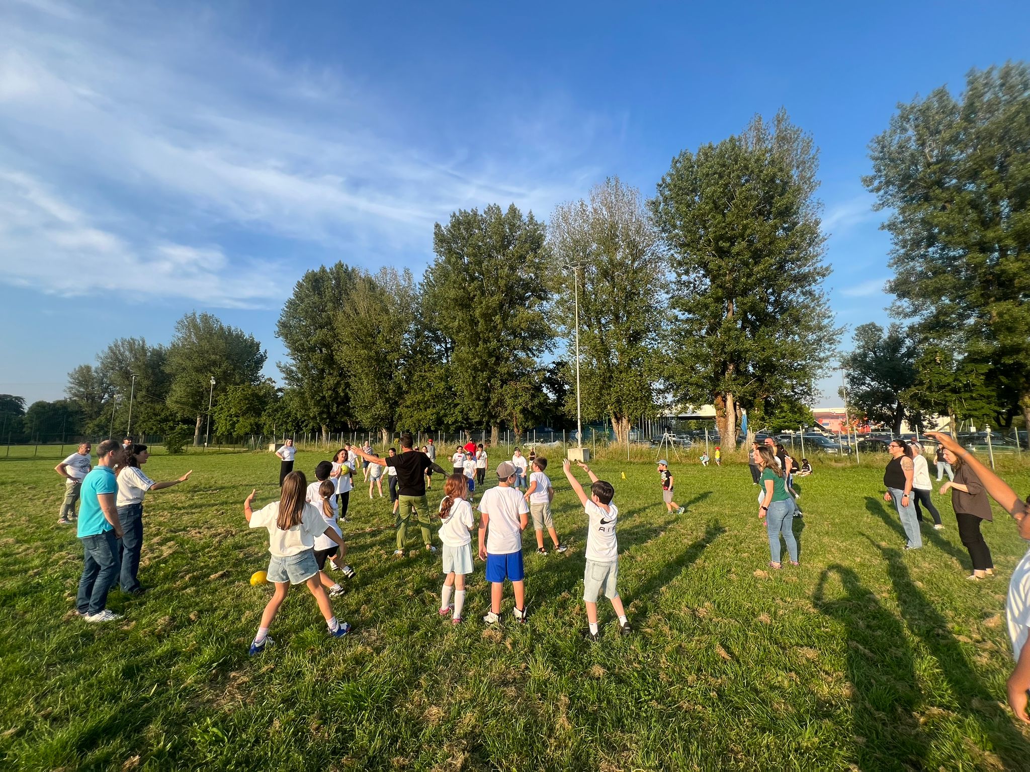 On Monday 26th May 2025, within the framework of the EPLAY Project, the primary school D.D. Dante Alighieri of Mirandola (Province of Modena, Italy), in collaboration with UNIMORE (University of Modena and Reggio Emilia), ForModena, and Disprassiamo association organized an event involving fifth-grade students of the school and their families. The event included an opening ceremony with institutional greetings from the mayor of Mirandola, as well as from Unimore and AC Reggiana representatives. Then, the event aimed at involving children and their parents in multiple psychological-sports activities, in collaboration with physical education teachers of the school and Unimore trainees. More specifically, parents and children were collectively involved in activities focused on reflecting on the importance of including and respecting others and to build cohesive communities, including a final dodgeball match where parents and children played together in the spirit of fairplay. Finally, the evening closed with a symbolic graduation (“cap toss”) and a shared buffet, to celebrate the end of primary school for fifth grade students who are about to transition into middle school.