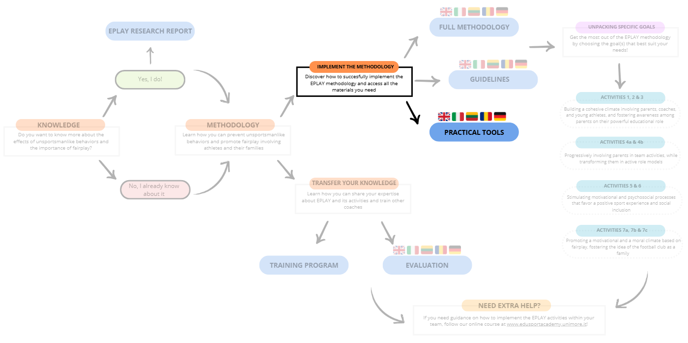 These tools support the implementation of EPLAY methodology activities and include: 1) a brief introduction letter to be presented to parents to introduce the project (Available in multiple languages) ; and 2) a register to keep track of all methodology activities carried out by teams.
