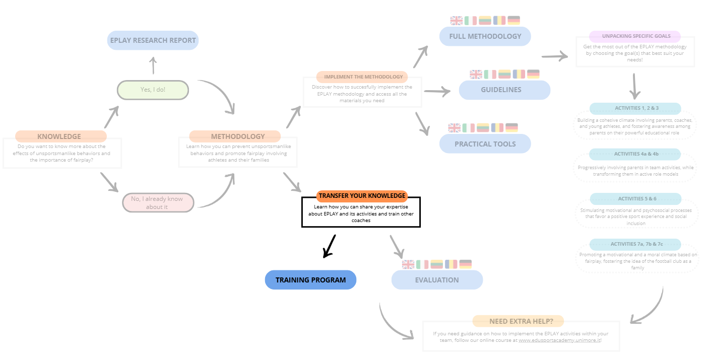 This training program was developed for the coaches who participated in the EPLAY project and can also be delivered to coaches interested in learning more about EPLAY and its methodology activities.